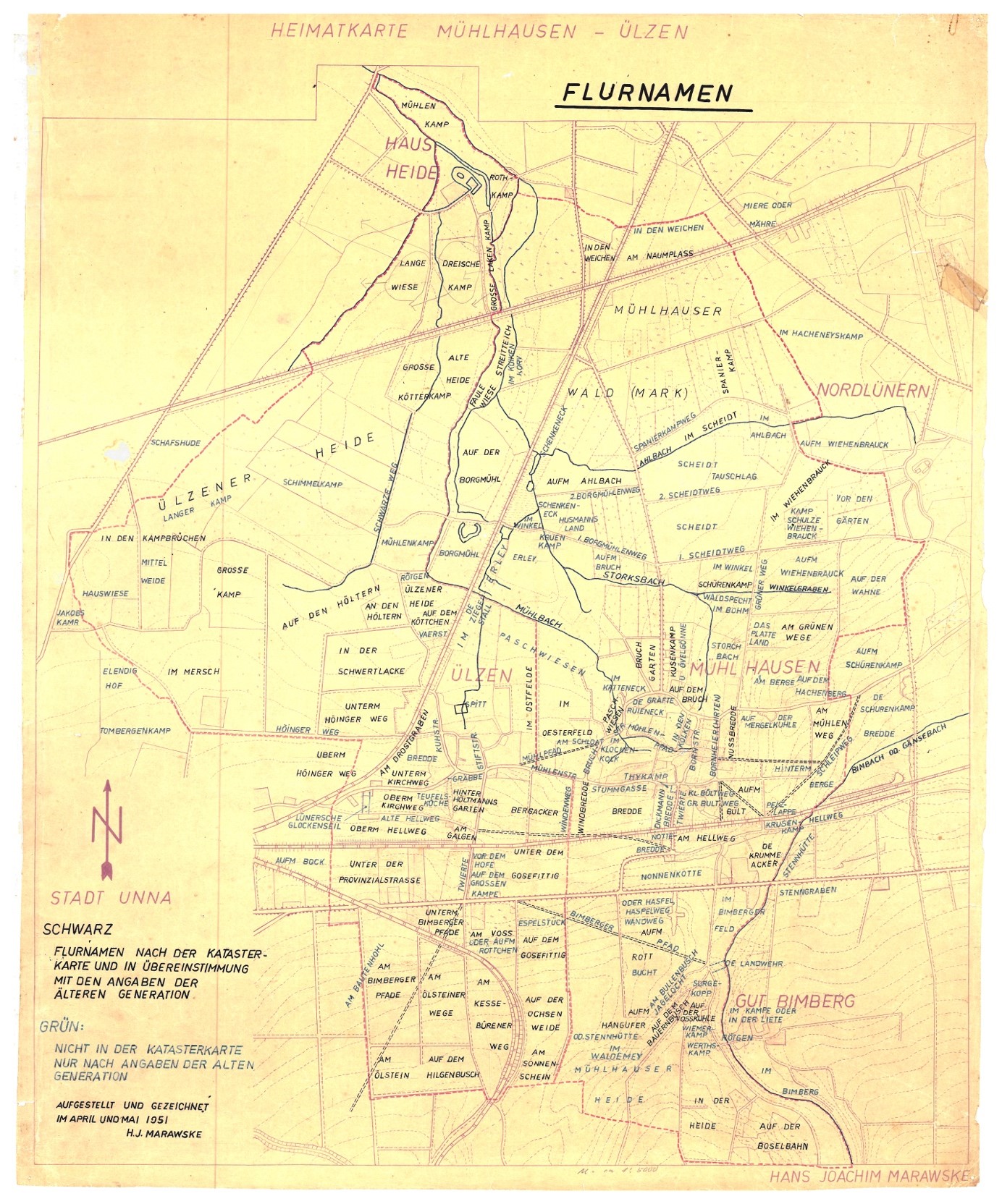 diese Karte von Mühlhausen/Uelzen – im Original im Maßstab von etwa 1 : 5000 – hat Hans Joachim Marawske