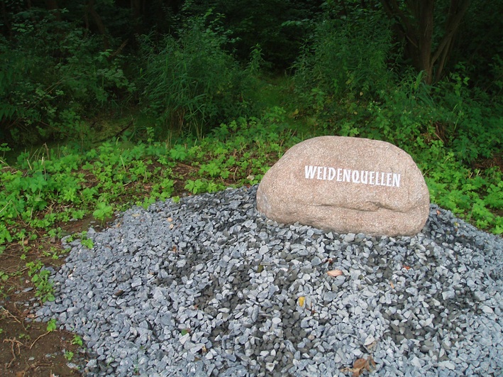 "Weidenquellen" mit dem vom Heimatverein aufgestellten Findling.