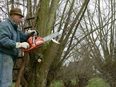 Friedhelm Kölker hinter seinem Hof beim Weidenschneiteln. (Foto: Ulla Bigalke - DVD 4.7.2)